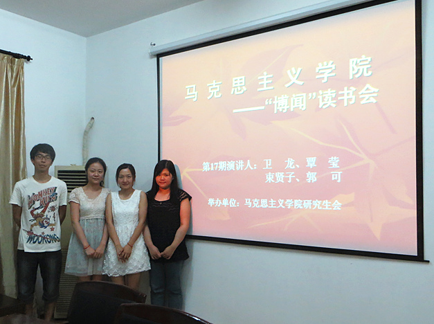 2013年06月19日晚,,,,,Stake官网“博闻”念书会在学院聚会室顺遂举行。。。。。。。。本期念书会由Stake官网研究生会主席李嘉仪、学术部部长孙梓毓主持,,,,,并组织学院研究生起劲加入。。。。。。。。此次念书会的主讲人划分是来自我院的卫龙、覃莹、束贤子、郭可四位同砚。。。。。。。。四位同砚以“中国梦”为主题举行了富厚生动的报告,,,,,赢得了在座同砚的赞许和掌声。。。。。。。。