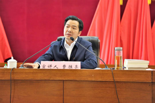 (通讯员:沈洁)4月27日,,,,,,,我校Stake官网院长、教授、博士生导师曹胜亮应鄂州市临空经济区约请作专题宣讲暨整体学习运动。。。。。。。。临空经济区党工委、鄂州临空集团公司向导班子成员、全区副科级以上干部及各村(社区)党支部书记加入整体学习。。。。。。。。鄂州市委常委、常务副市长、临空经济区党工委书记李忠禄主持宣讲运动。。。。。。。。