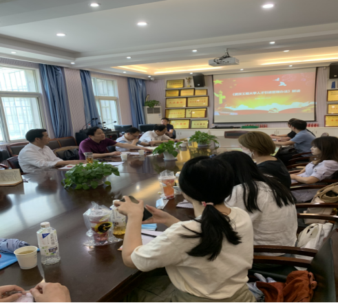 副院长金诗灿对《武汉工程大学人才引进管理步伐》举行了周全解读,,,, ,并就新进西席聘期使命与审核指标举行了指导与交流 。。。。。。。。